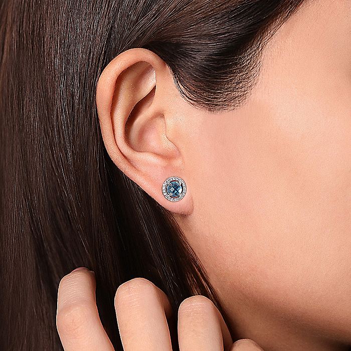 HOME / Gabriel & Co. EG13961W45BT 14K White Gold Round Blue Topaz Floating Diamond Halo Stud Earrings