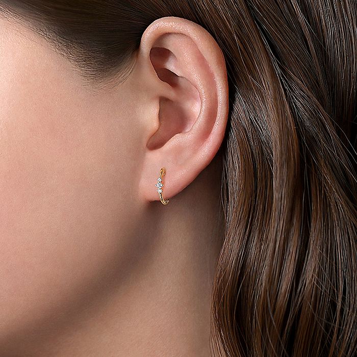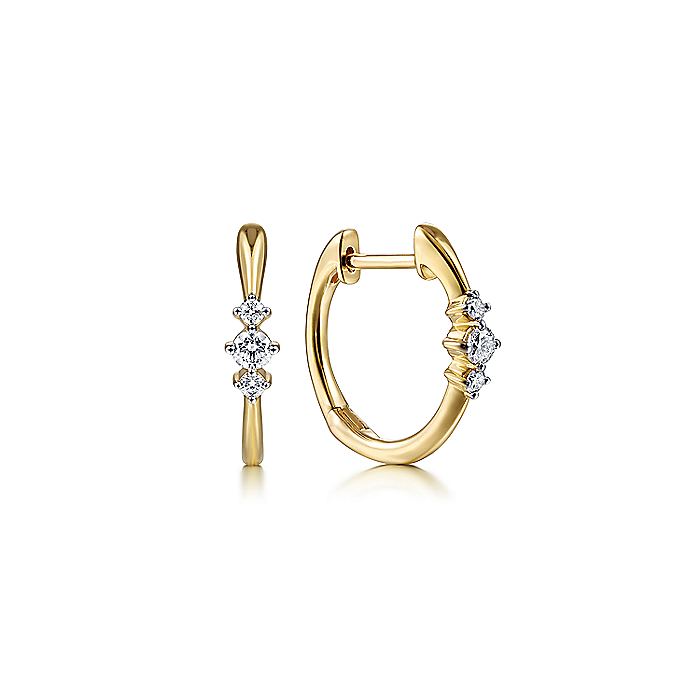 HOME / Gabriel & Co. EG14025Y45JJ 14K Yellow Gold Huggies with Three Diamond Stations