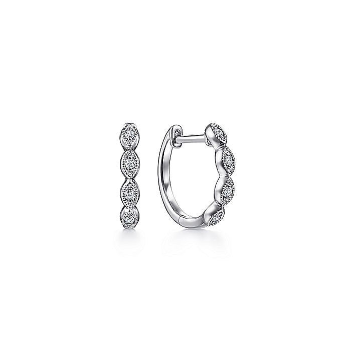 HOME / Gabriel & Co. EG14032W45JJ 14K White Gold Marquise Shape Diamond Station Huggies