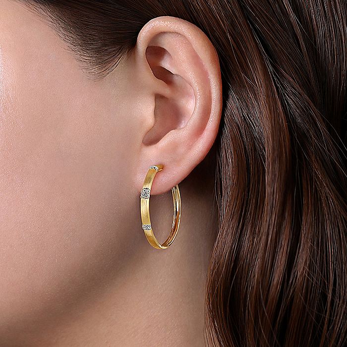 HOME / Gabriel & Co. EG14068M45JJ 14K White-Yellow Gold 30MM Classic Diamond Hoop Earrings