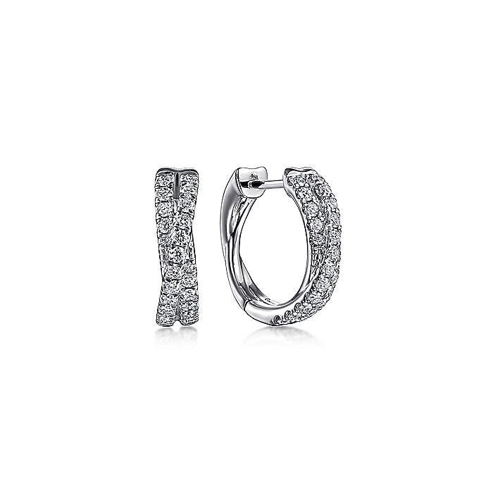 HOME / Gabriel & Co. EG14223W45JJ 14K White Gold 15mm Diamond Criss Cross Huggies