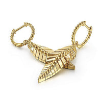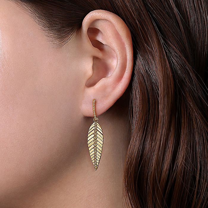 HOME / Gabriel & Co. EG14359Y4JJJ 14K Yellow Plain Gold Huggie Drop Leaf Earrings