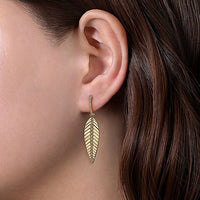 Gabriel & Co. EG14359Y4JJJ 14K Yellow Plain Gold Huggie Drop Leaf Earrings