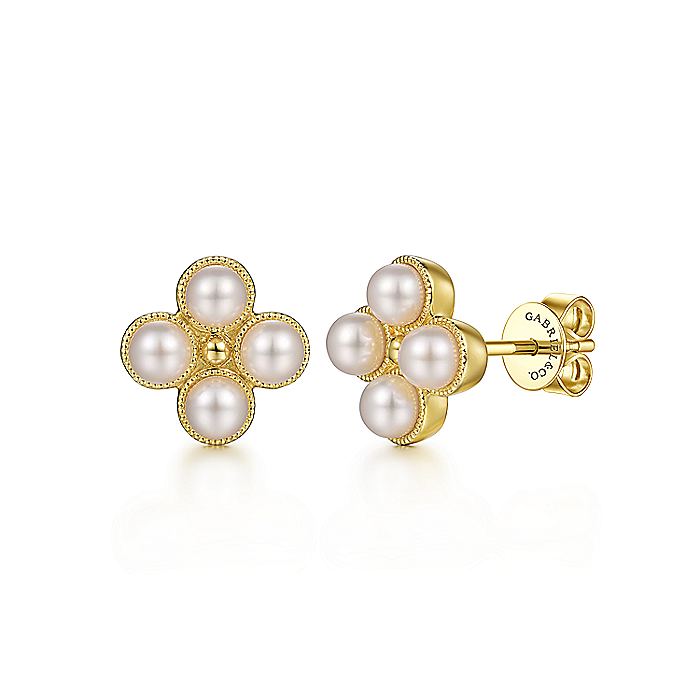 HOME / Gabriel & Co. EG14578Y4JPL 14K Yellow Gold Pearl Bujukan Stud Earrings