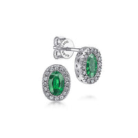HOME / Gabriel & Co. EG9510W44EB 14K White Gold Oval Emerald and Diamond Halo Stud Earrings