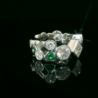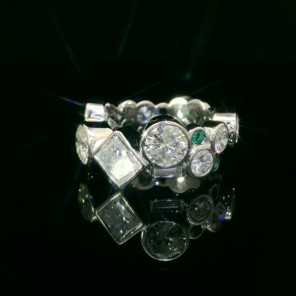 This stunning bracelet features a captivating arrangement of sparkling diamonds and vibrant emeralds, perfect for adding a touch of elegance to any outfit. The unique design showcases a mix of shapes and sizes, ensuring it stands out in any jewelry collection.