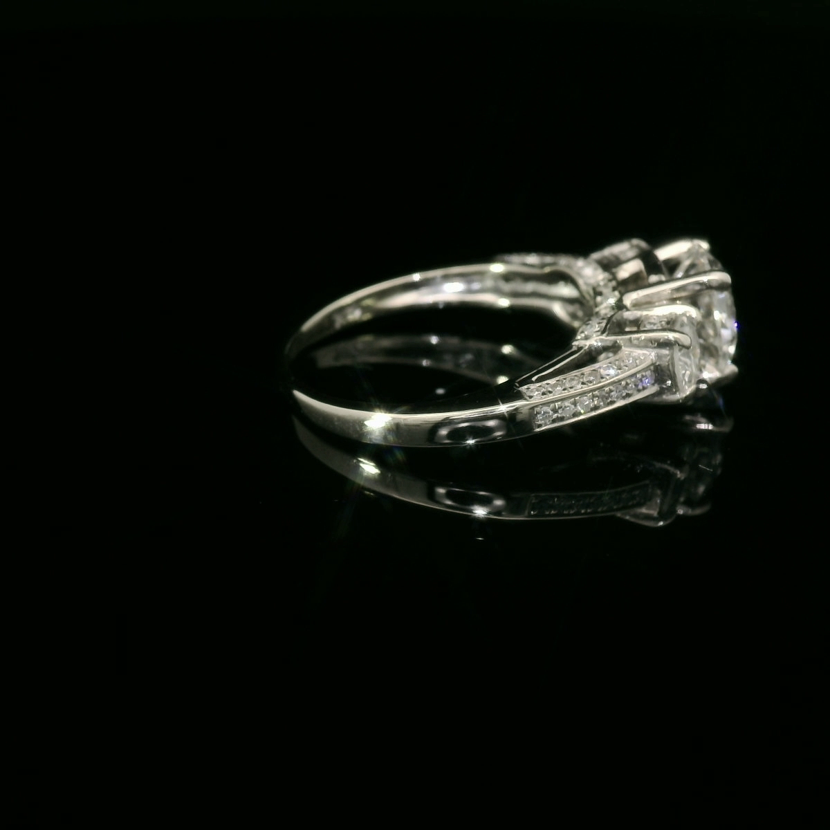 This stunning diamond engagement ring features a brilliant round center stone, surrounded by sparkling side stones that enhance its allure. Crafted with precision, the band showcases intricate detailing, making it a perfect symbol of love and commitment. Ideal for that special moment, this ring is sure to leave a lasting impression.