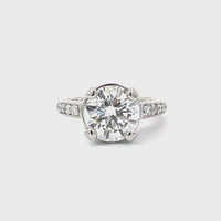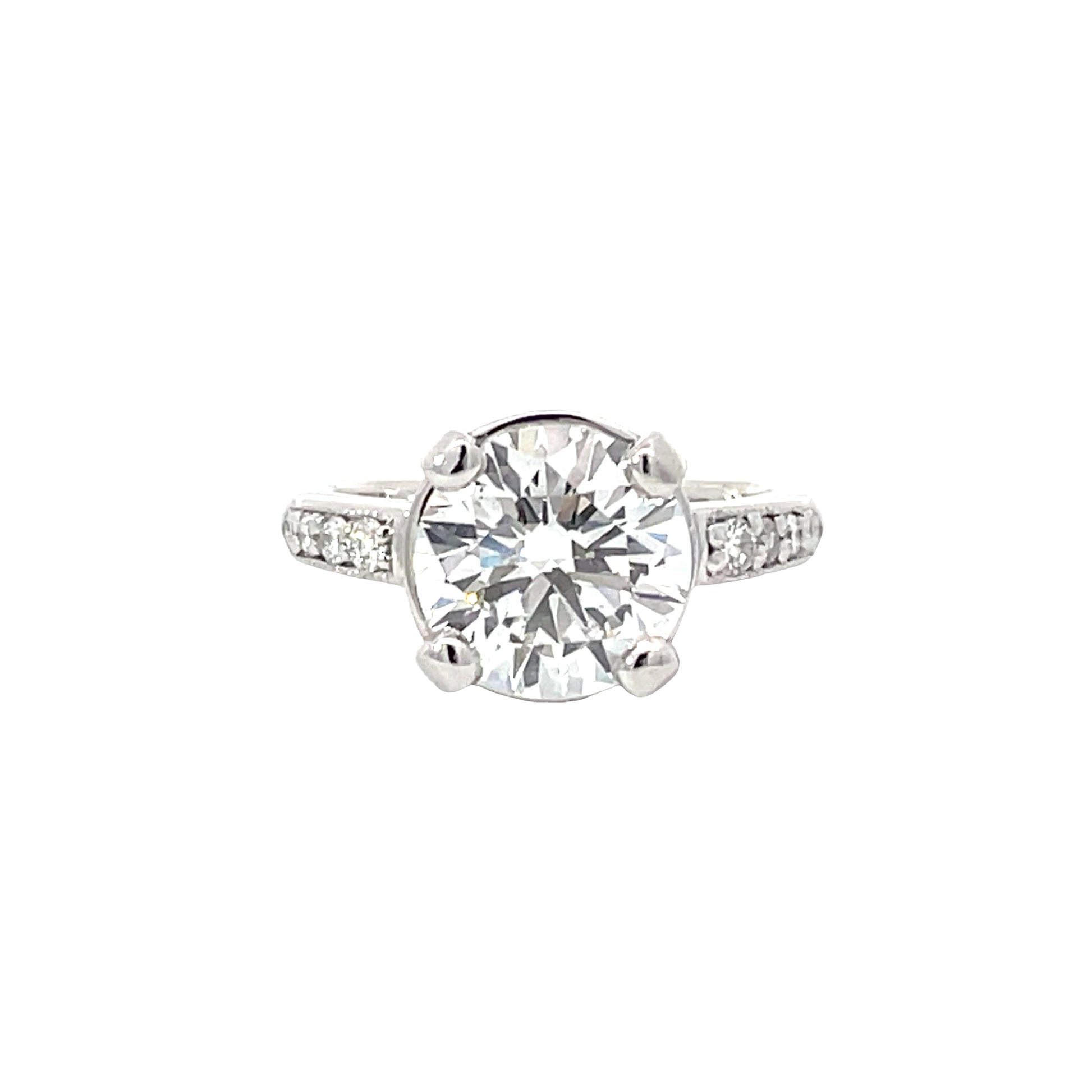 This elegant diamond engagement ring showcases a brilliant round-cut diamond as its centerpiece. The sparkling stone is set on a sleek band adorned with smaller diamonds, exuding timeless elegance and sophistication.