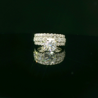 This stunning diamond engagement ring features a brilliant square-cut center stone, surrounded by a halo of smaller diamonds. The intricate band is designed with sparkling accents that catch the light beautifully, making it a perfect symbol of love and commitment.