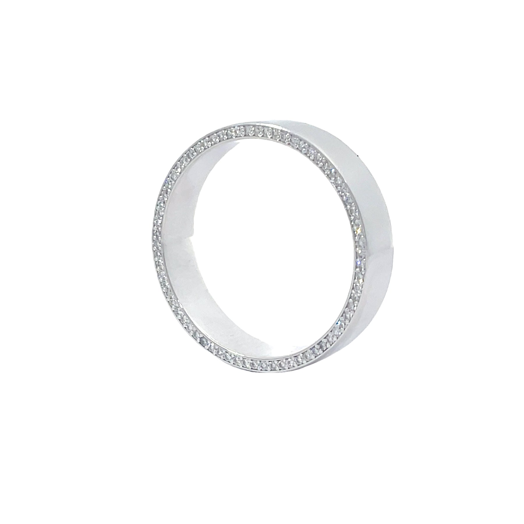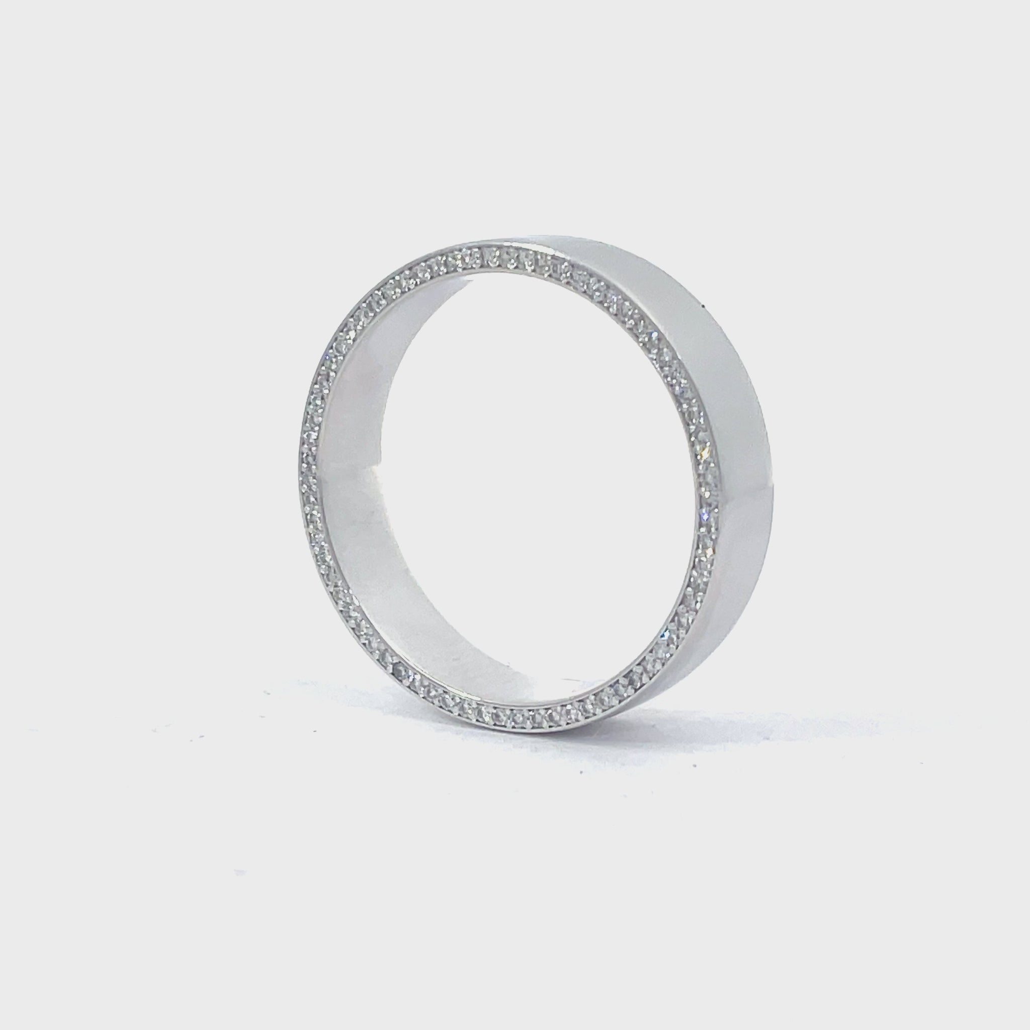 This exquisite diamond ring features a sleek, modern design with a continuous row of sparkling diamonds set in a polished band. Perfect for adding a touch of elegance to any outfit.