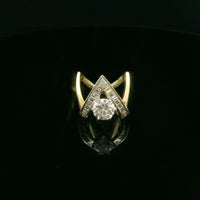 This stunning diamond ring features a brilliant central stone, elegantly framed by intricate band detailing. The combination of yellow gold and sparkling diamonds creates a luxurious look, perfect for any special occasion. Elevate your jewelry collection with this exquisite piece that embodies timeless elegance.