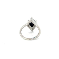 This exquisite ring features a striking diamond-shaped gemstone, elegantly set in a sleek band. The unique design is perfect for those who appreciate bold and sophisticated jewelry pieces. Its sparkling allure makes it an ideal choice for special occasions or as a statement accessory.