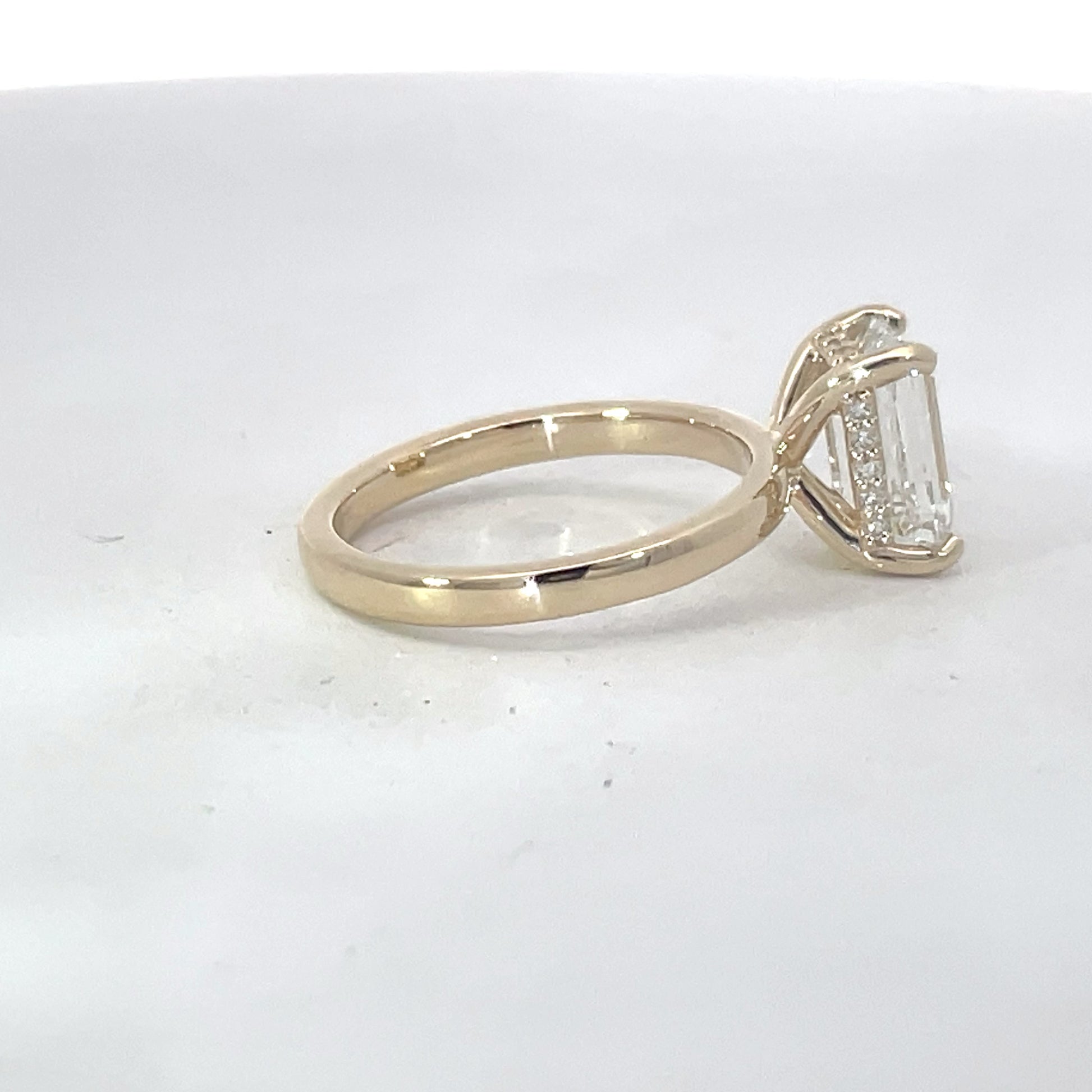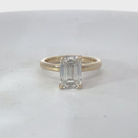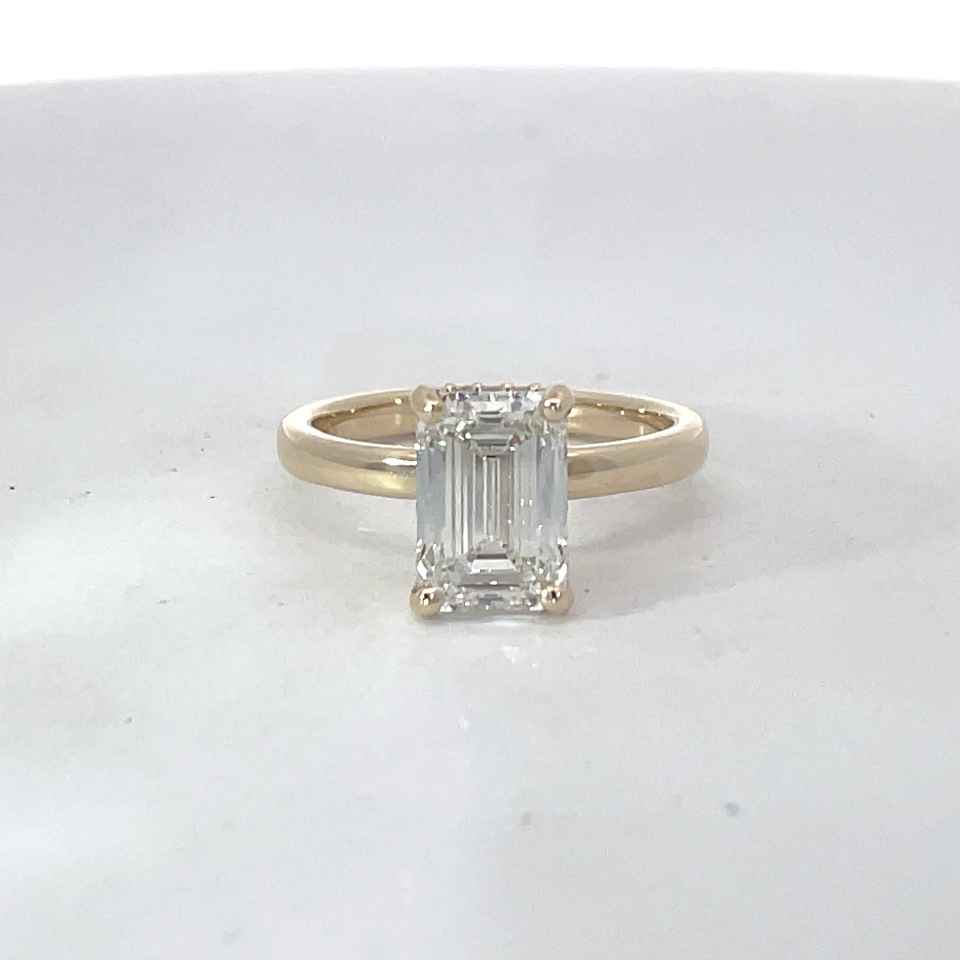 This exquisite ring features a stunning emerald cut diamond, set in a sleek and polished gold band. Its minimalist design highlights the diamond's clarity and brilliance, making it a perfect choice for those who appreciate understated elegance. Ideal for engagements or special occasions, this ring is a timeless piece that exudes sophistication.