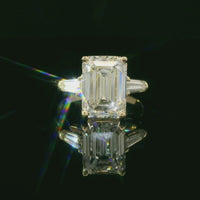 Discover the timeless beauty of this elegant emerald-cut diamond ring. Featuring a stunning central diamond flanked by two exquisite side stones, this piece radiates sophistication and charm. Perfect for engagements or special occasions, it captures the essence of luxury and style.