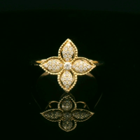 This stunning floral gold ring features a delicate design adorned with sparkling diamonds. The intricate detailing and polished finish make it a perfect accessory for any occasion, adding a touch of elegance to your outfit.