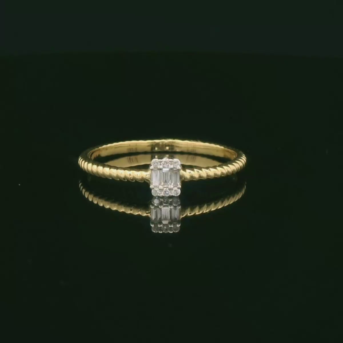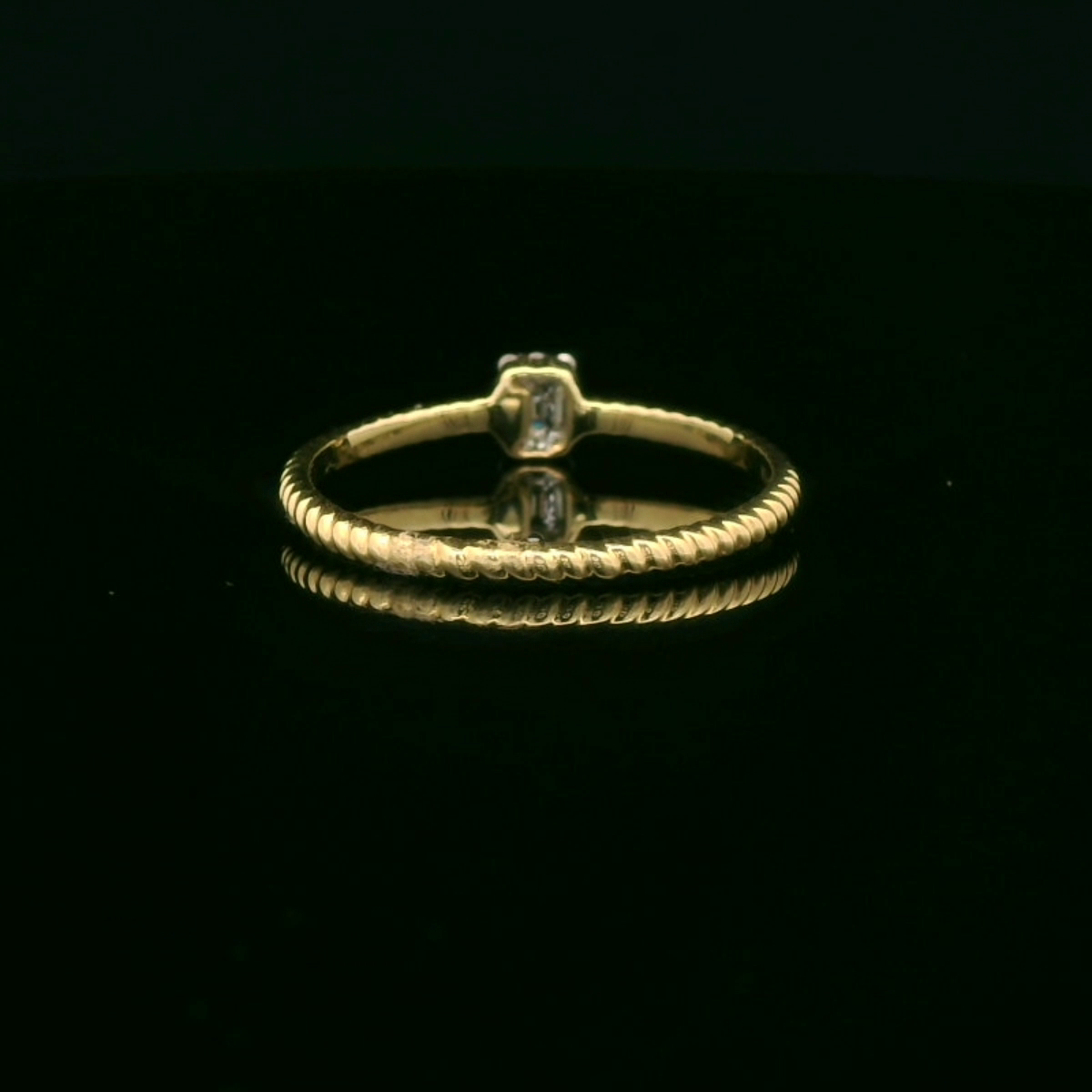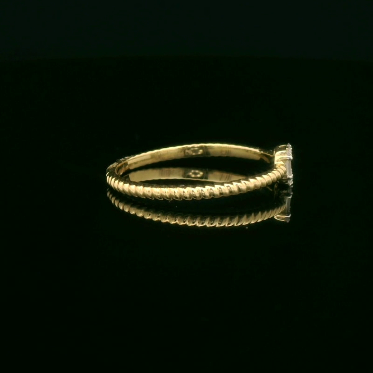 This stunning gold ring features a beautifully crafted twisted band, showcasing a sparkling diamond accent at its center. Perfect for engagements or special occasions, it combines elegance with a modern twist, making it a timeless addition to any jewelry collection.