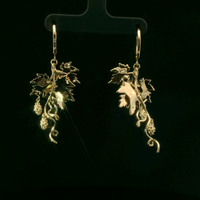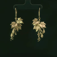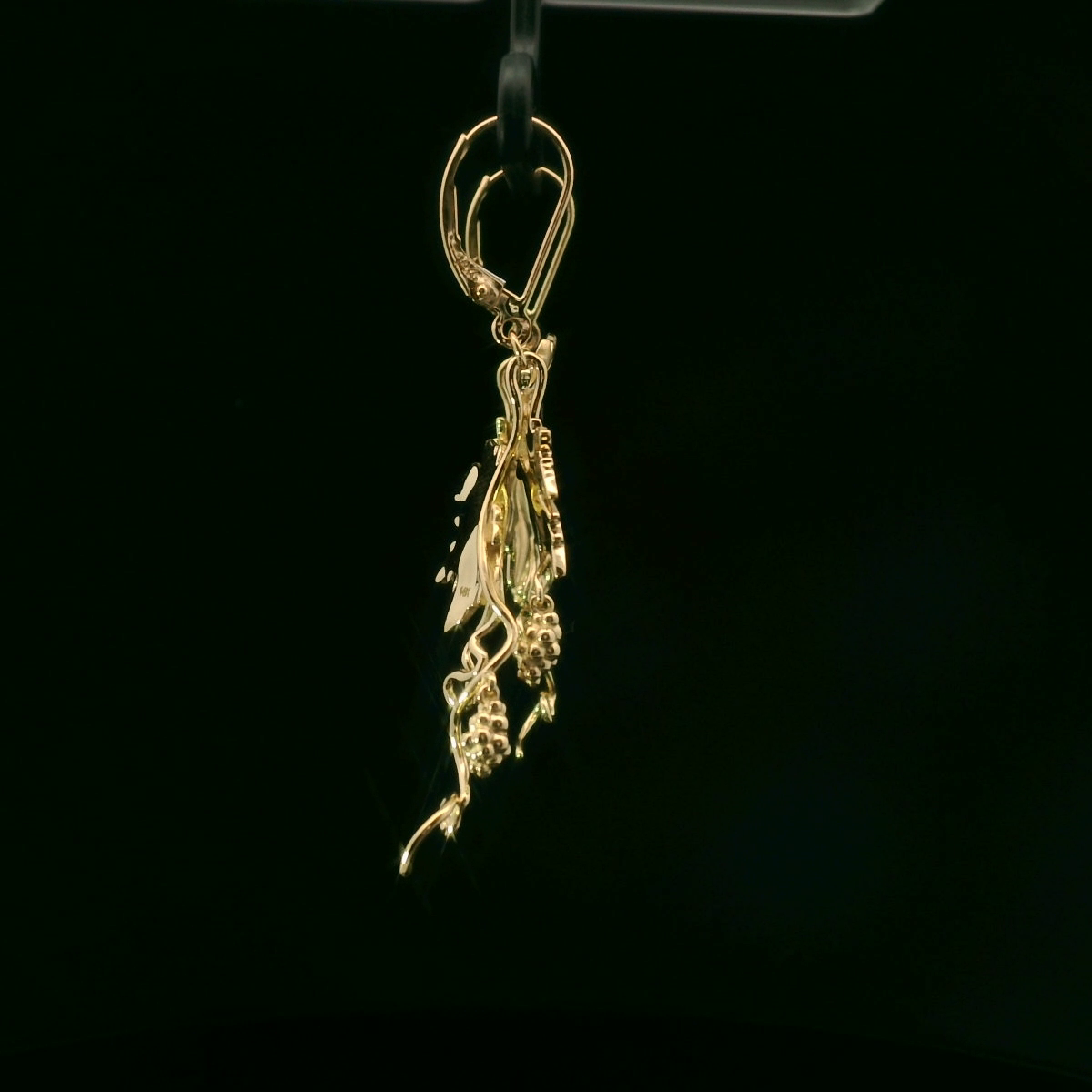 These stunning earrings feature intricate designs of leaves and grapes, crafted in a luxurious gold finish. Perfect for adding a touch of nature-inspired elegance to any outfit, they are ideal for both casual and formal occasions.