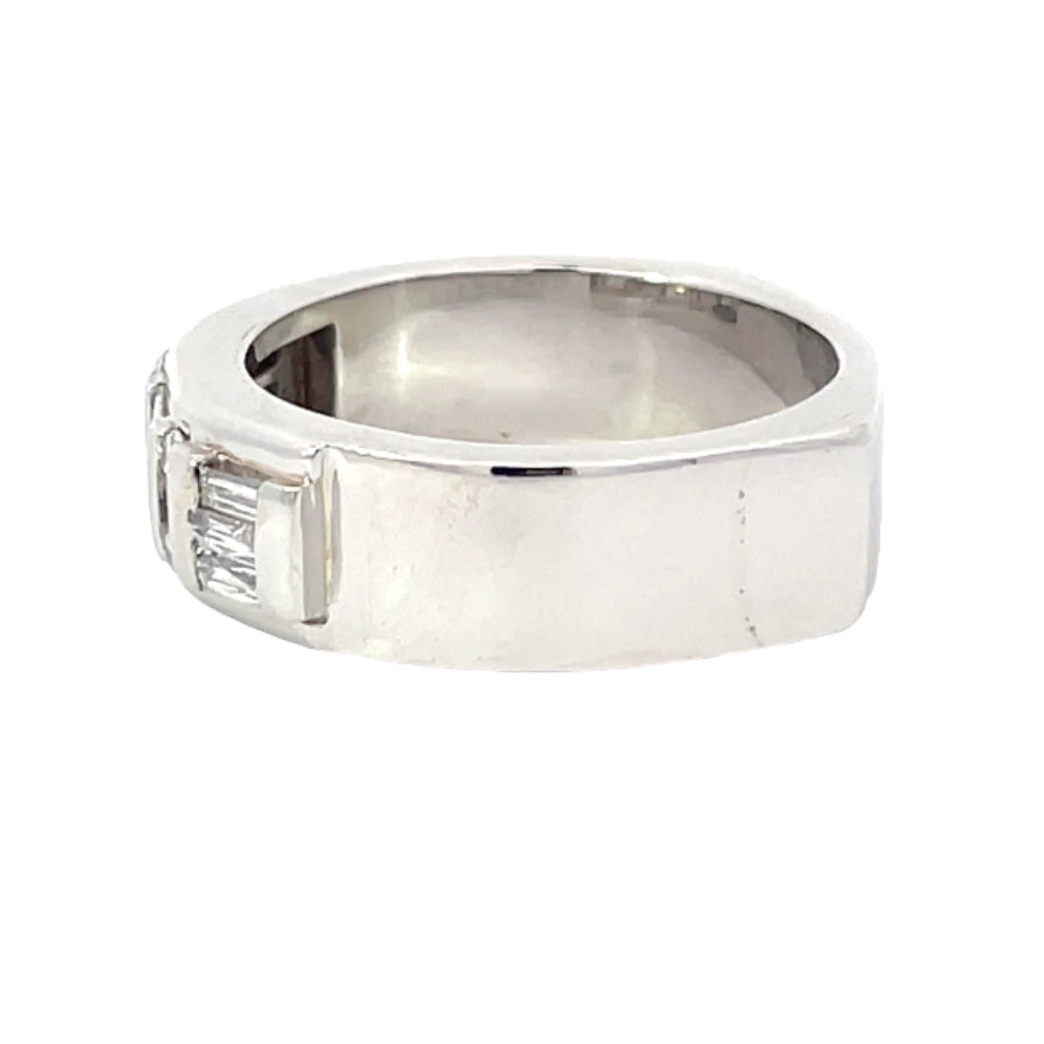 This stunning silver ring is the epitome of sophistication. Its sleek band is adorned with a series of expertly cut diamonds that catch the light beautifully, symbolizing strength and eternal love.