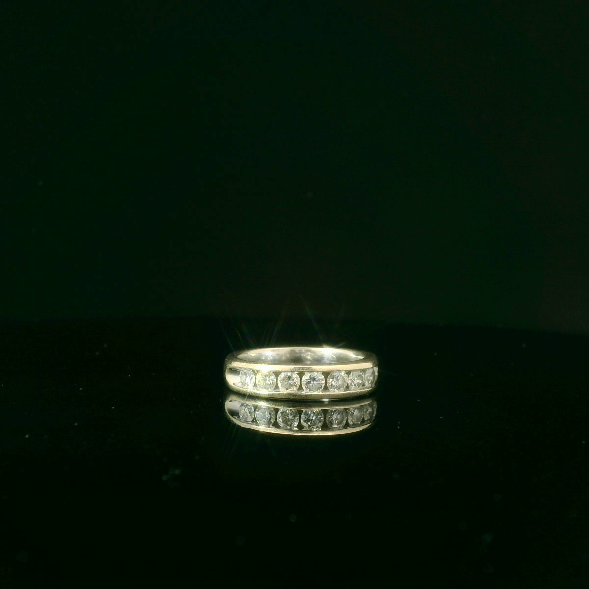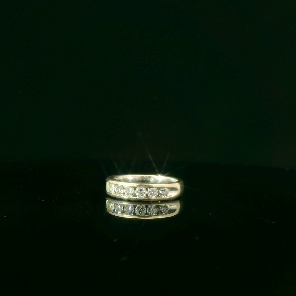 This stunning silver ring features a sleek design adorned with sparkling diamonds. Its elegant appearance makes it a perfect accessory for both casual and formal occasions. The ring's reflective surface enhances its brilliance, ensuring it catches the light beautifully.