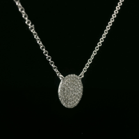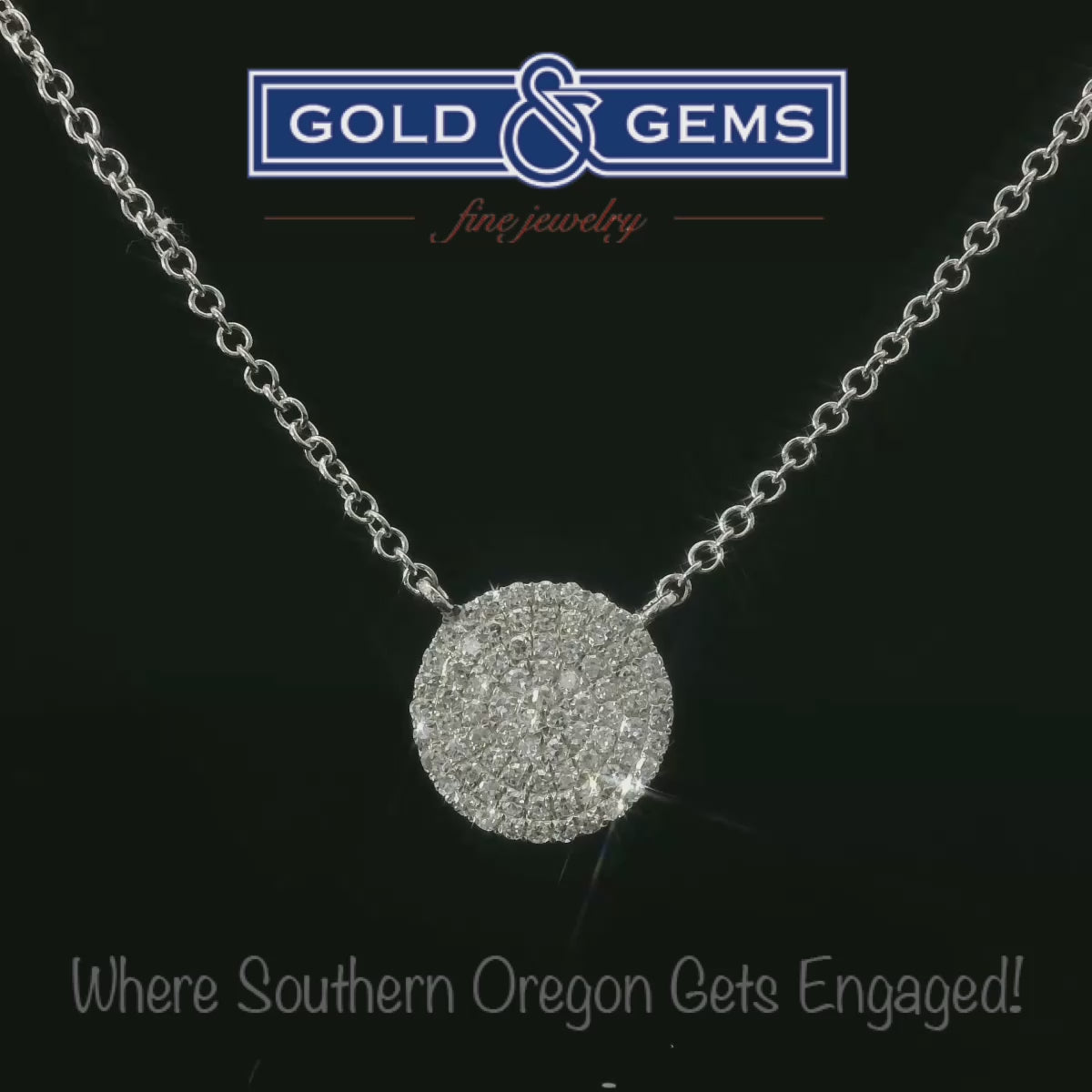 HOME / Elegant White Gold Micro-Pave’ Diamond Disc Pendant / Necklace