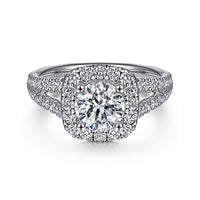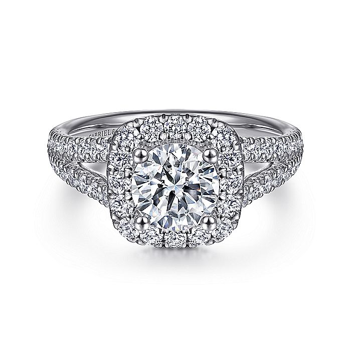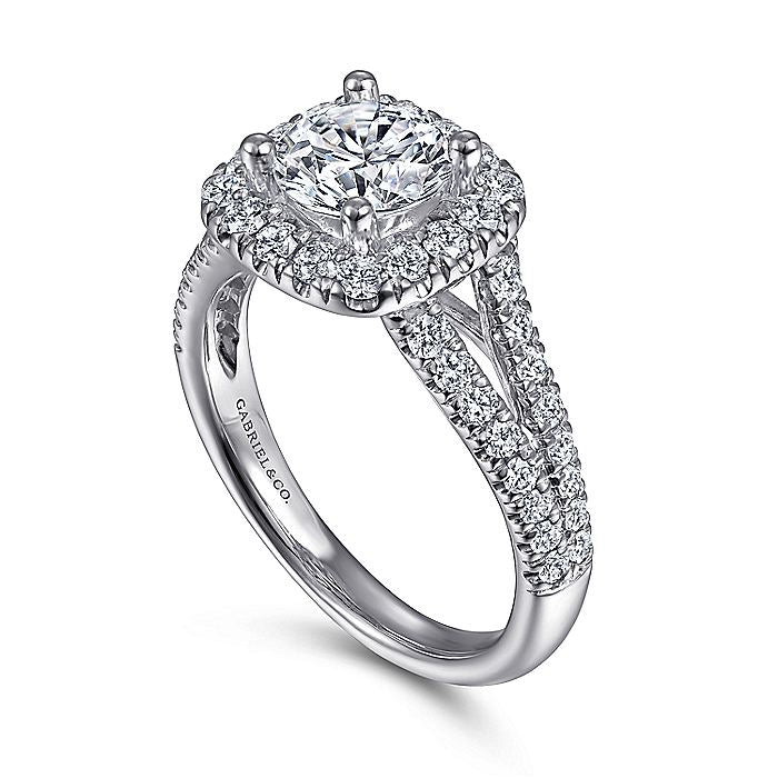 HOME / Gabriel & Co. ER10252W44JJ 14K White Gold Cushion Halo Round Diamond Engagement Ring