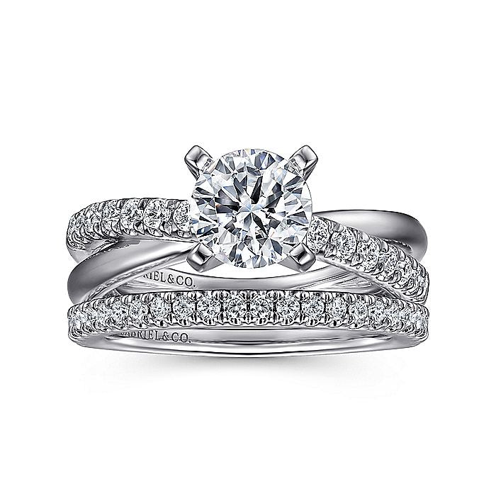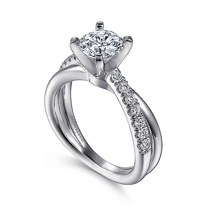 Gabriel & Co. ER10439W44JJ 14K White Gold Round Twisted Diamond Engagement Ring