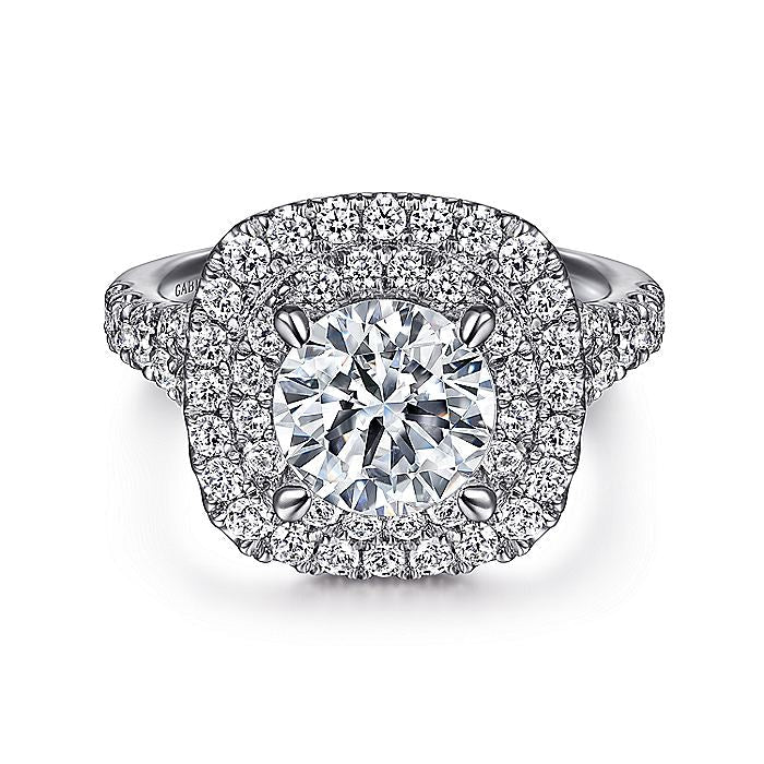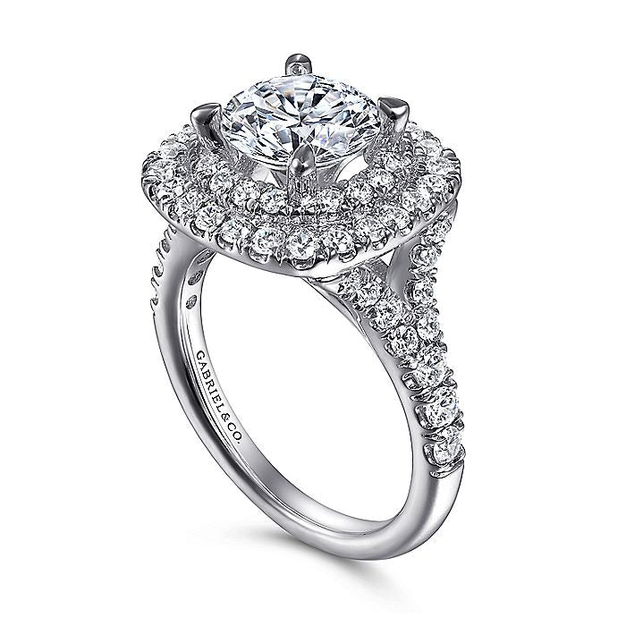 Gabriel & Co. ER10754R8W44JJ 14K White Gold Round Double Halo Diamond Engagement Ring