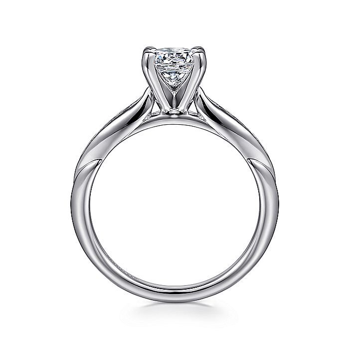 Gabriel & Co.'s sleek and sophisticated ring is straight styled for the classic woman. Showcasing your center stone with delicate oval channels on each side.