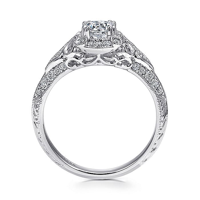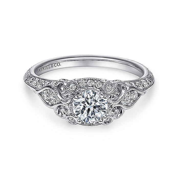 HOME / Gabriel & Co. ER11865R0W44JJ Unique 14K White Gold Vintage Inspired Diamond Halo Engagement Ring