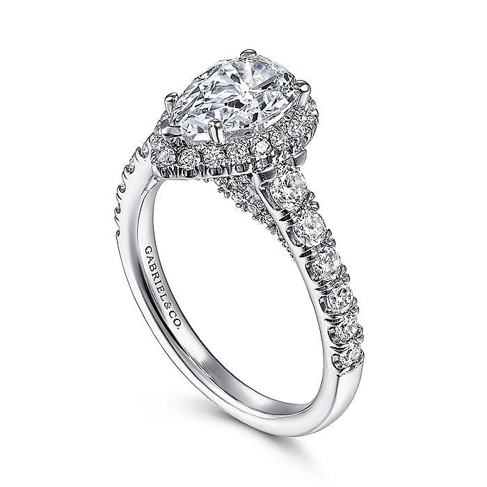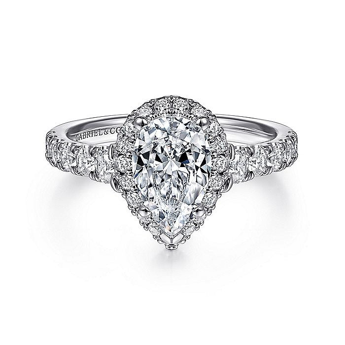 Gabriel & Co. ER12764P4W44JJ 14K White Gold Pear Shape Halo Diamond Engagement Ring