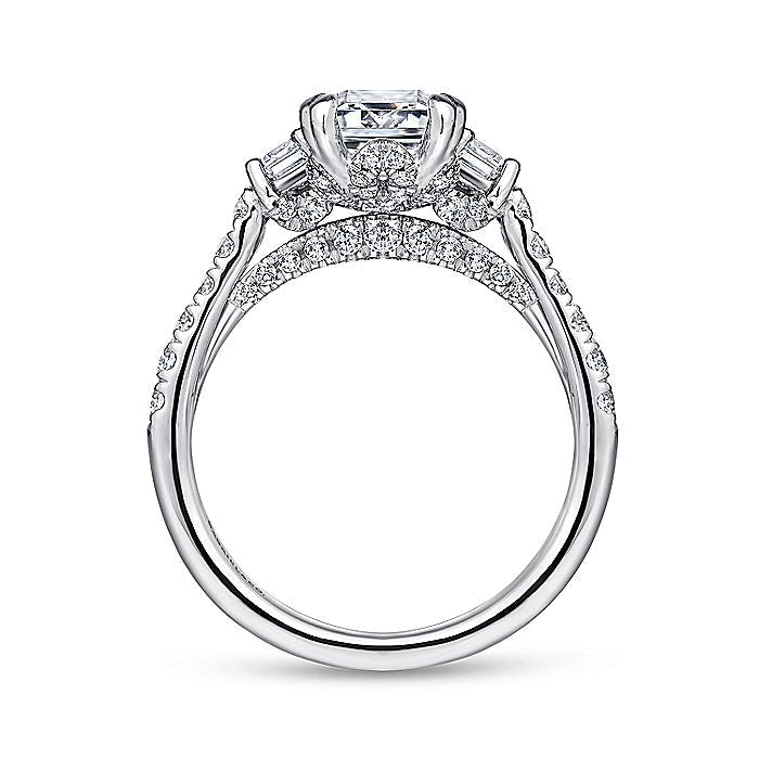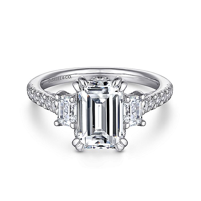 HOME / Gabriel & Co. ER14069E6W44JJ 14K White Gold Emerald Cut Three Stone Diamond Engagement Ring