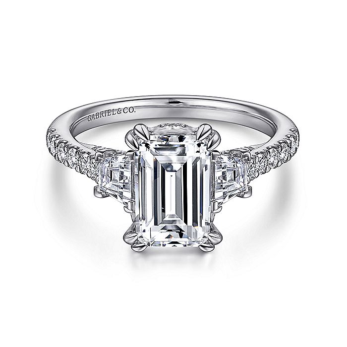 HOME / Gabriel & Co. ER14070E6W44JJ 14K White Gold Emerald Cut Three Stone Diamond Engagement Ring