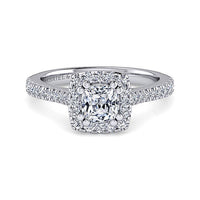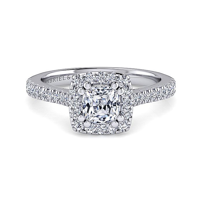 HOME / Gabriel & Co. ER14314W44JJ 14K White Gold Cushion Halo Diamond Engagement Ring