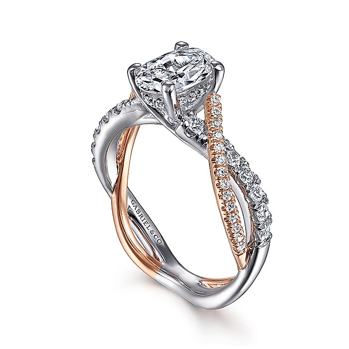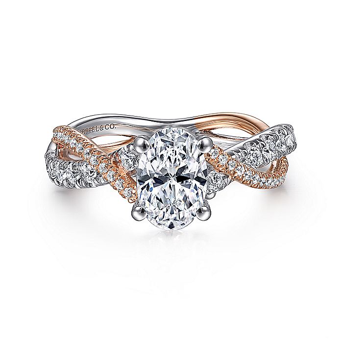 Gabriel & Co. ER14460O4T44JJ 14K White-Rose Gold Oval Diamond Twisted Engagement Ring
