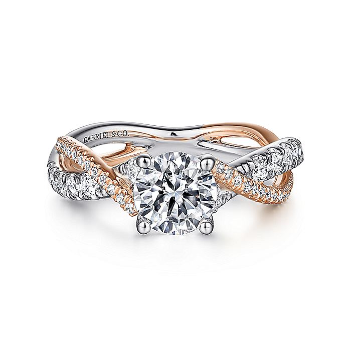 HOME / Gabriel & Co. ER14460R4T44JJ 14K White-Rose Gold Round Diamond Twisted Engagement Ring
