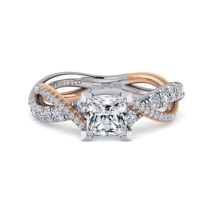 HOME / Gabriel & Co. ER14460S4T44JJ 14K White-Rose Gold Princess Cut Diamond Twisted Engagement Ring