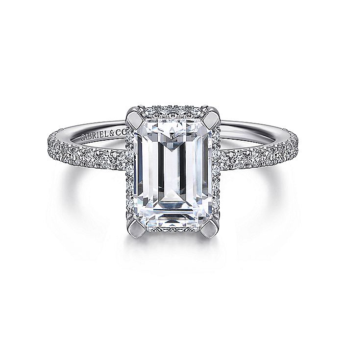 HOME / Gabriel & Co. ER14719E8W44JJ 14K White Gold Hidden Halo Emerald Cut Diamond Engagement Ring