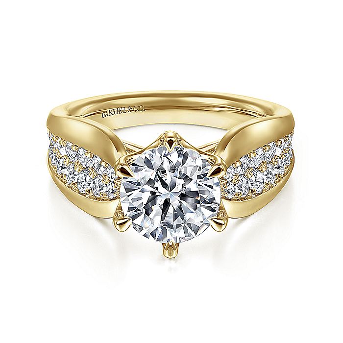 HOME / Gabriel & Co. ER14966R8Y44JJ 14K Yellow Gold Wide Band Round Diamond Engagement Ring