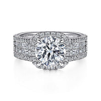 HOME / Gabriel & Co. ER15040R8W44JJ 14K White Gold Cushion Halo Round Diamond Engagement Ring