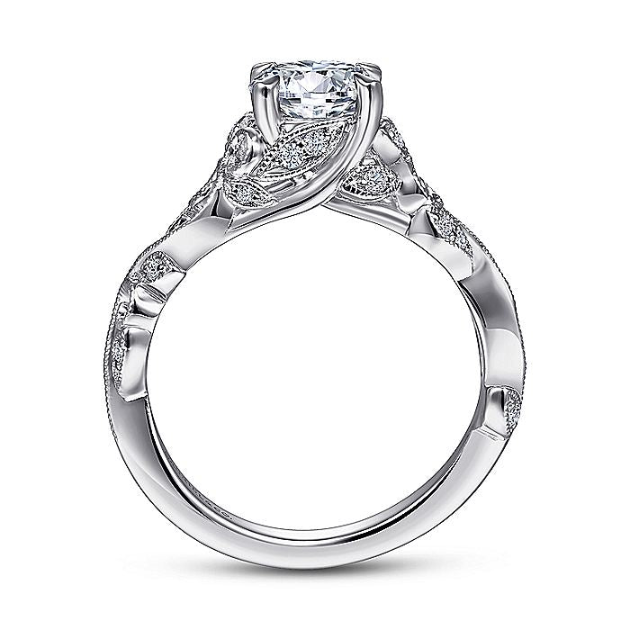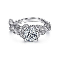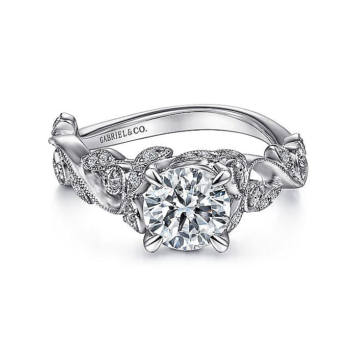 Gabriel & Co. ER15207R4W44JJ 14K White Gold Floral Round Diamond Engagement Ring