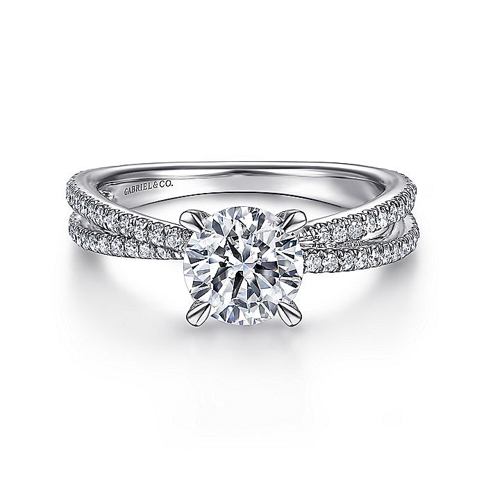 HOME / Gabriel & Co. ER15214R4W44JJ 14K White Gold Split Shank Round Diamond Engagement Ring