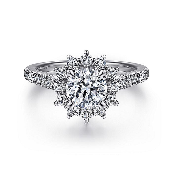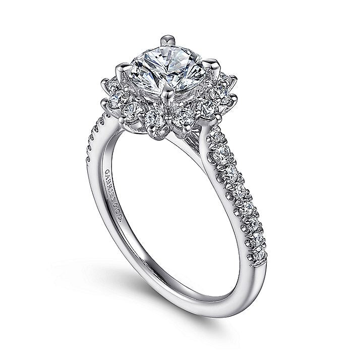 Gabriel & Co. ER15590R4W44JJ 14K White Gold Fancy Halo Round Diamond Engagement Ring