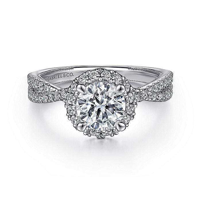 Gabriel & Co. ER15598Q4W44JJ 14K White Gold Round Halo Diamond Engagement Ring