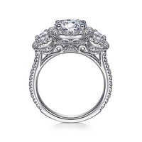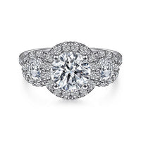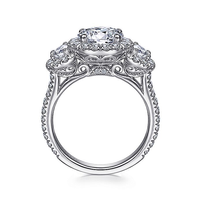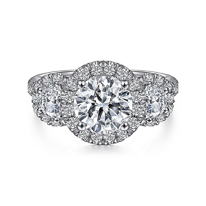 Gabriel & Co. ER6744W83JJ 18K White Gold Round Three Stone Halo Diamond Engagement Ring
