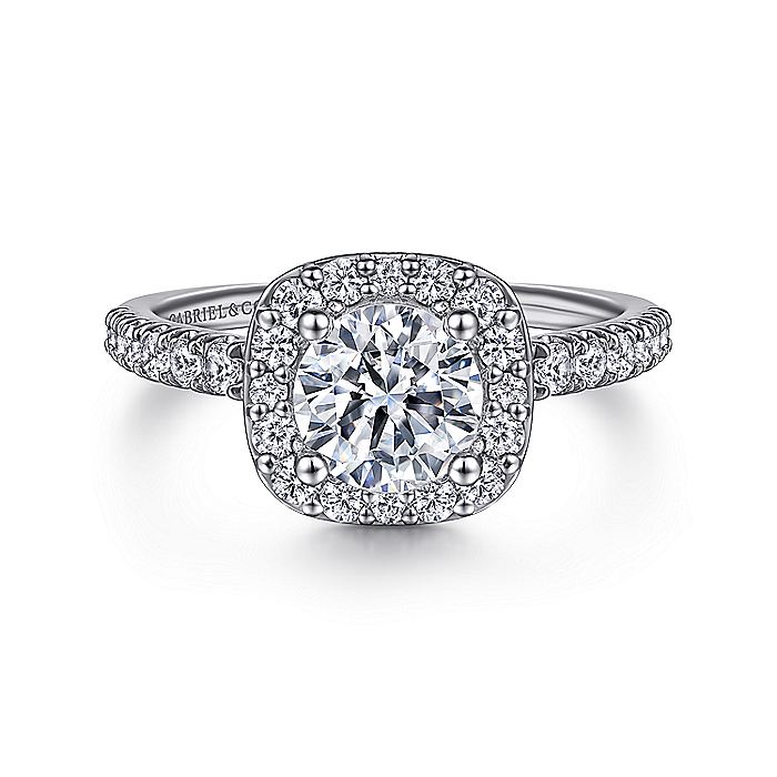Gabriel & Co. ER6872W44JJ 14K White Gold Cushion Halo Round Diamond Engagement Ring