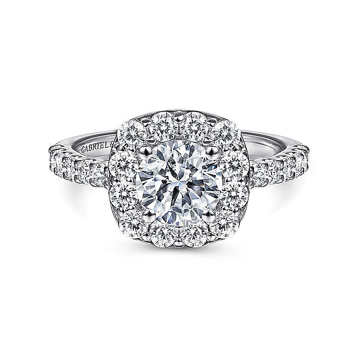 HOME / Gabriel & Co. ER7480W44JJ 14K White Gold Cushion Halo Round Diamond Engagement Ring