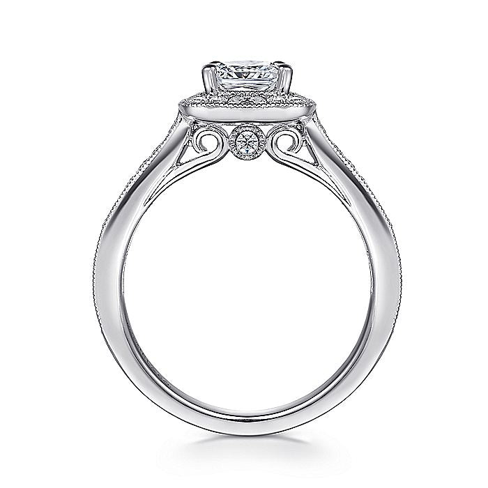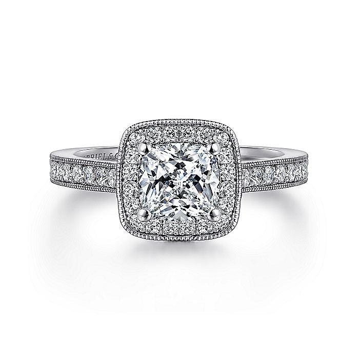 Gabriel & Co. ER7527W44JJ Vintage Inspired 14K White Gold Cushion Halo Diamond Engagement Ring
