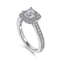 HOME / Gabriel & Co. ER7527W44JJ Vintage Inspired 14K White Gold Cushion Halo Diamond Engagement Ring