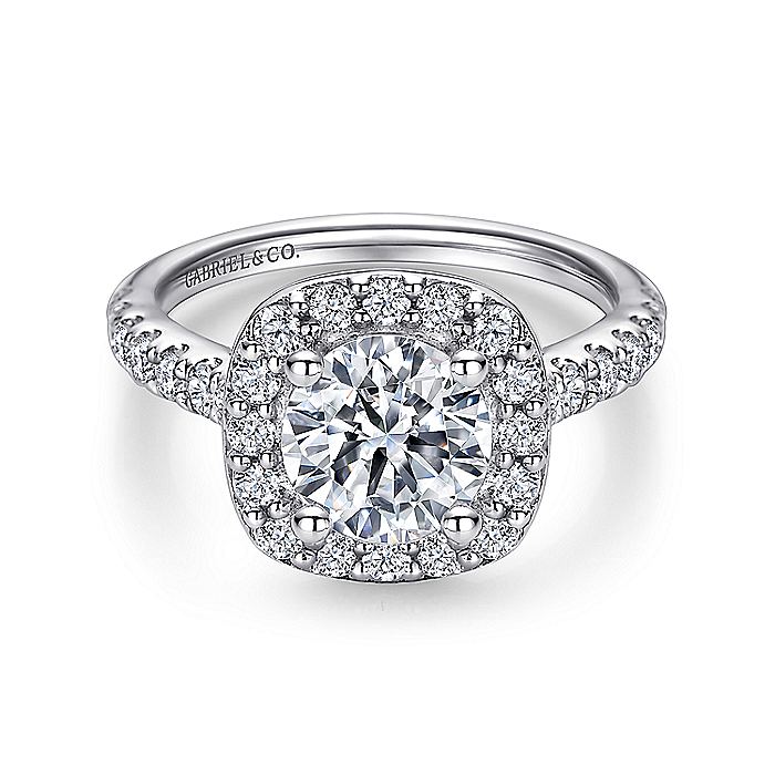 Gabriel & Co. ER9321W44JJ 14K White Gold Cushion Halo Round Diamond Engagement Ring