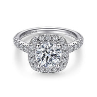 HOME / Gabriel & Co. ER9321W44JJ 14K White Gold Cushion Halo Round Diamond Engagement Ring
